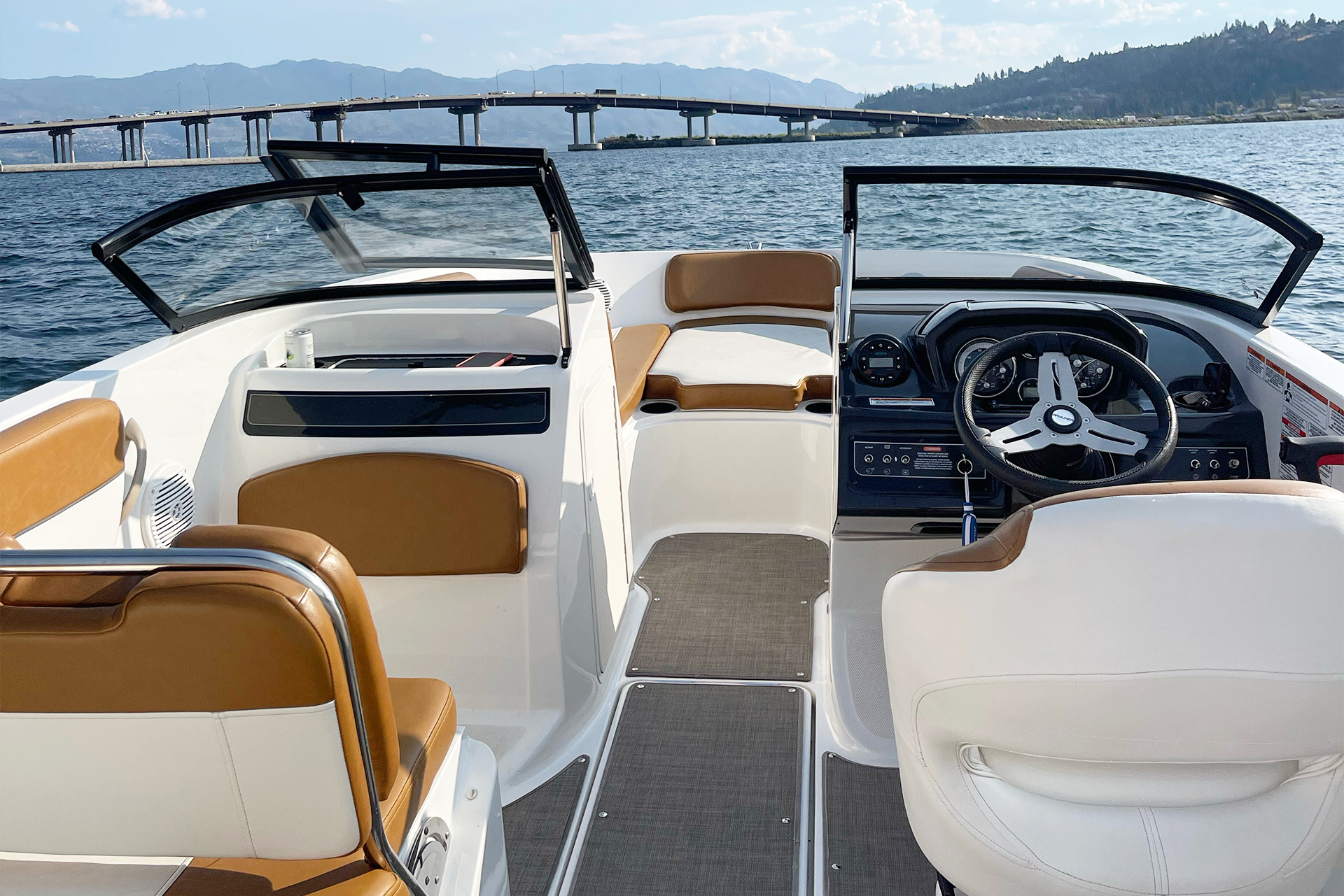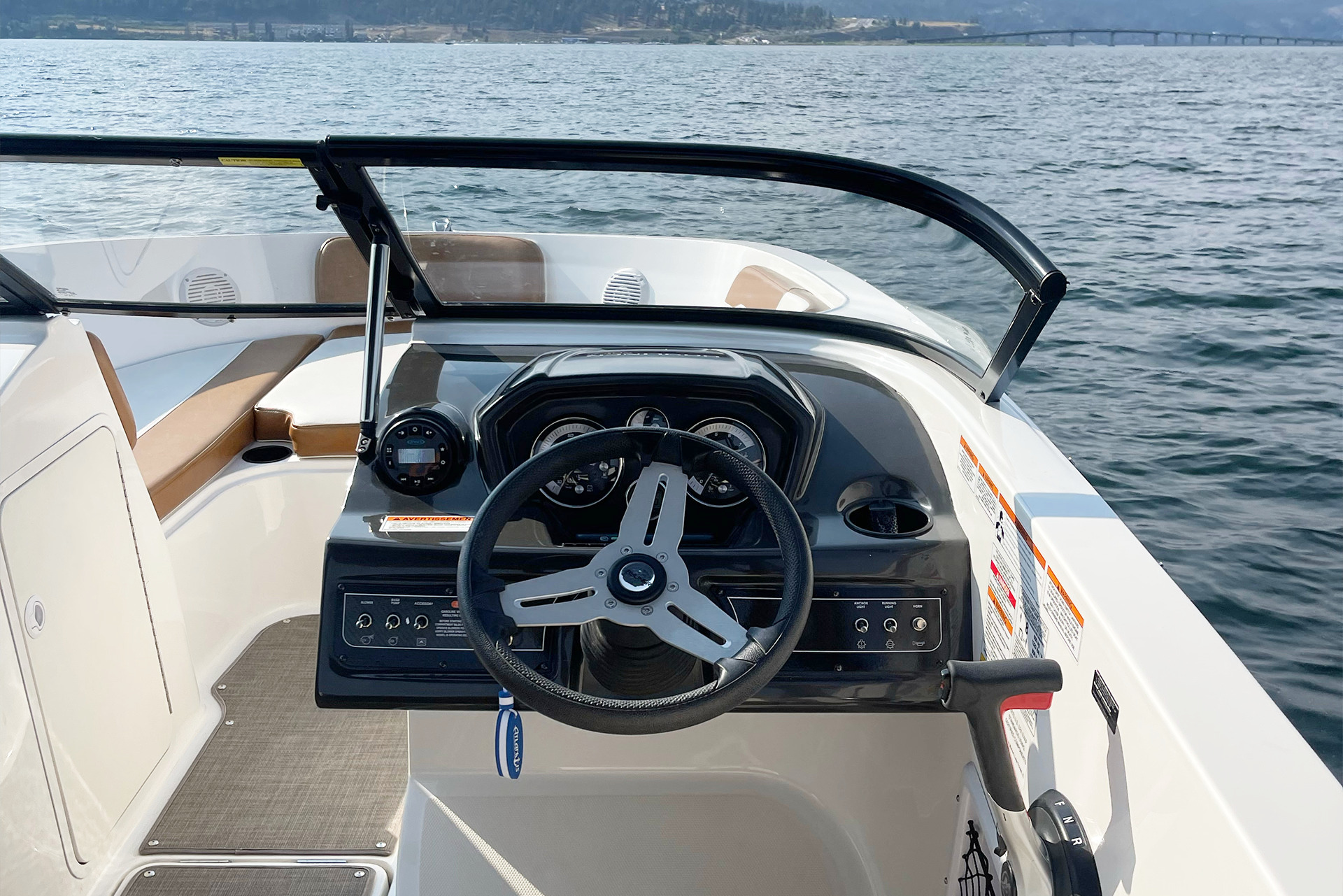 The Okanagan lakes have lots of room for you to cruise in. At 200 horsepower, this boat has enough power to be a great time! However, it must be operated safely as it is capable of “outperforming” its operator.